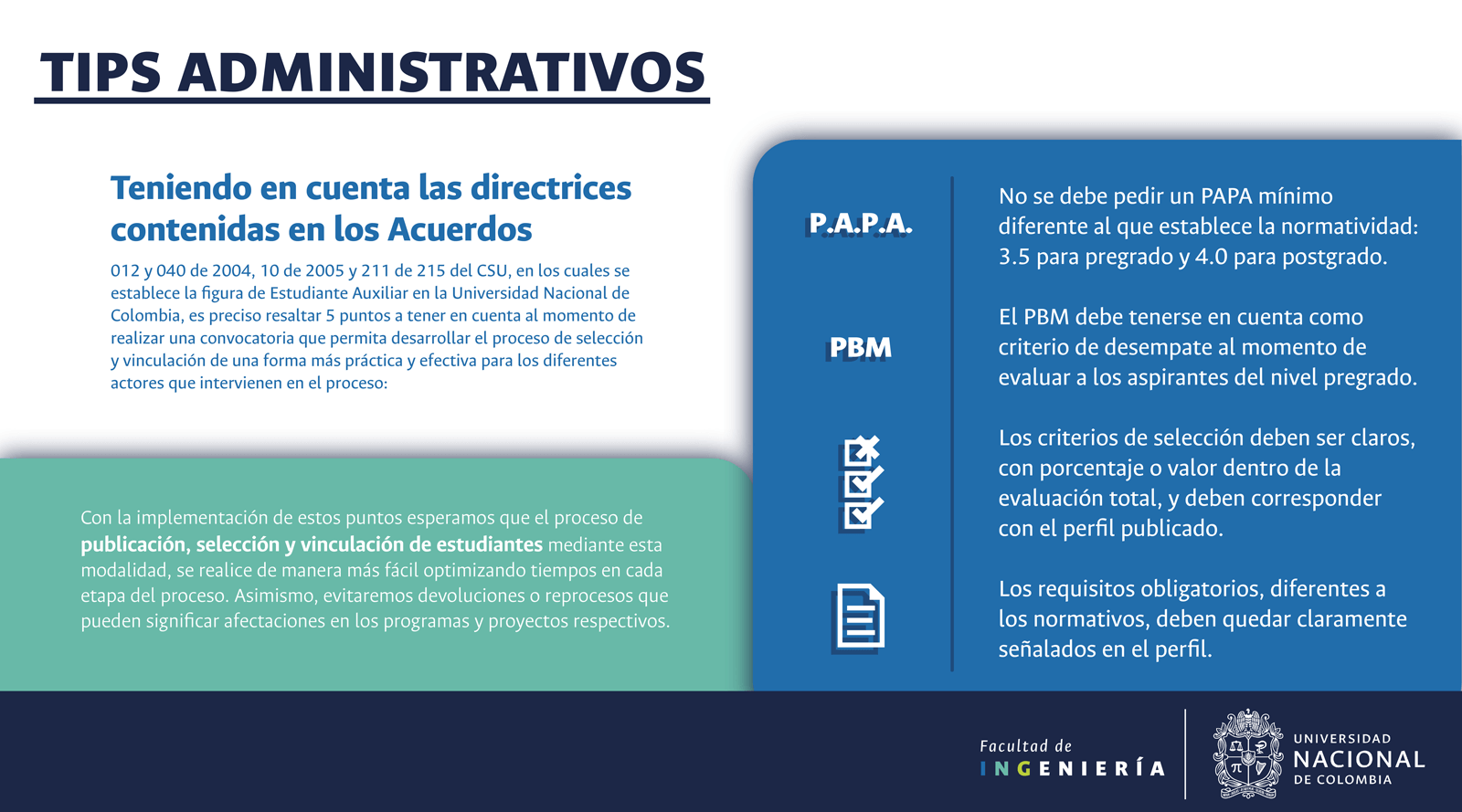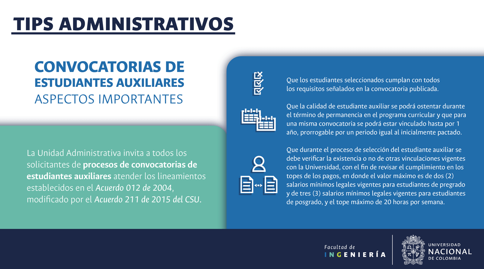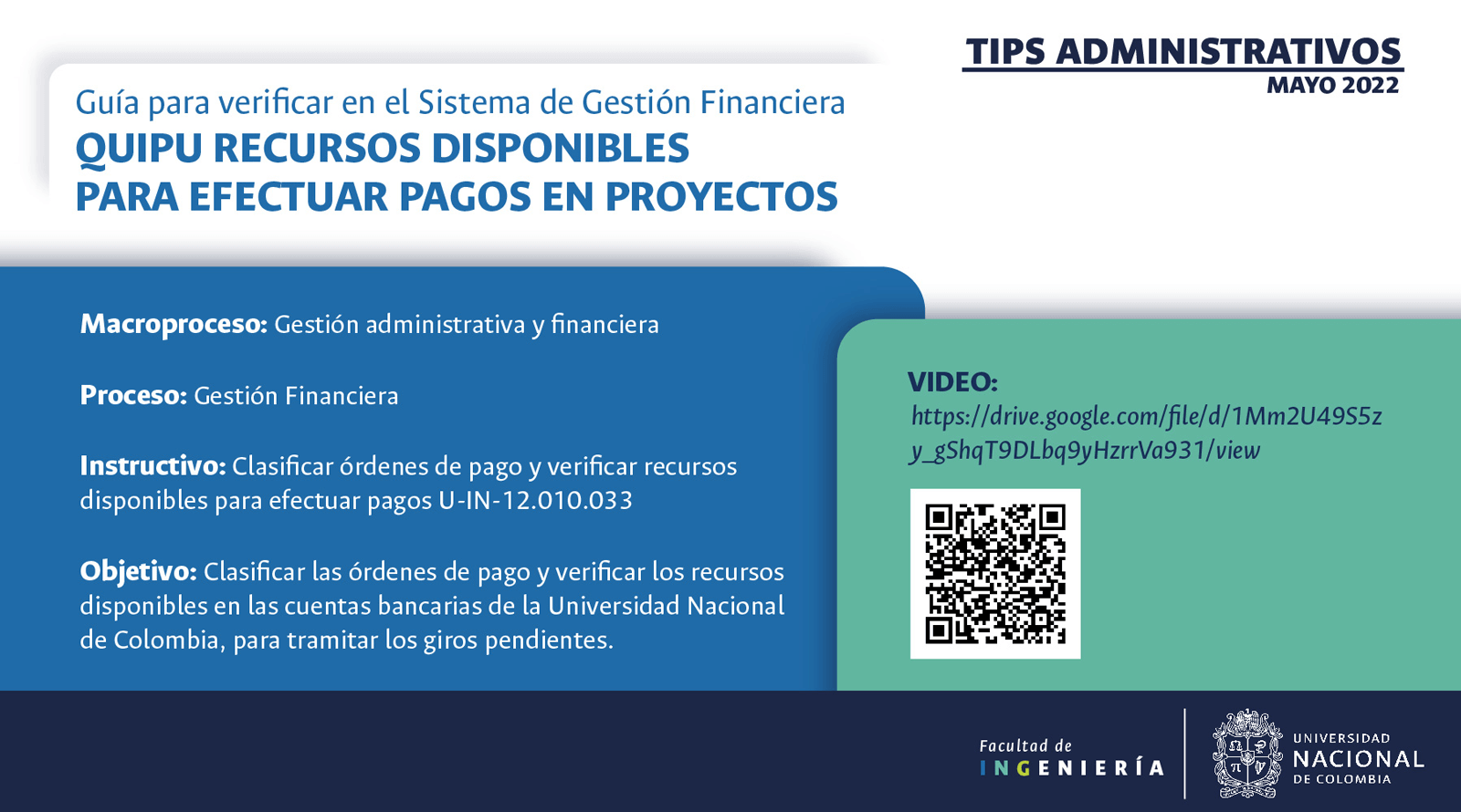 La Unidad Administrativa es la dependencia de la Facultad de Ingeniería que se encarga de la gestión y el seguimiento de los procesos que implican manejo de recursos económicos.